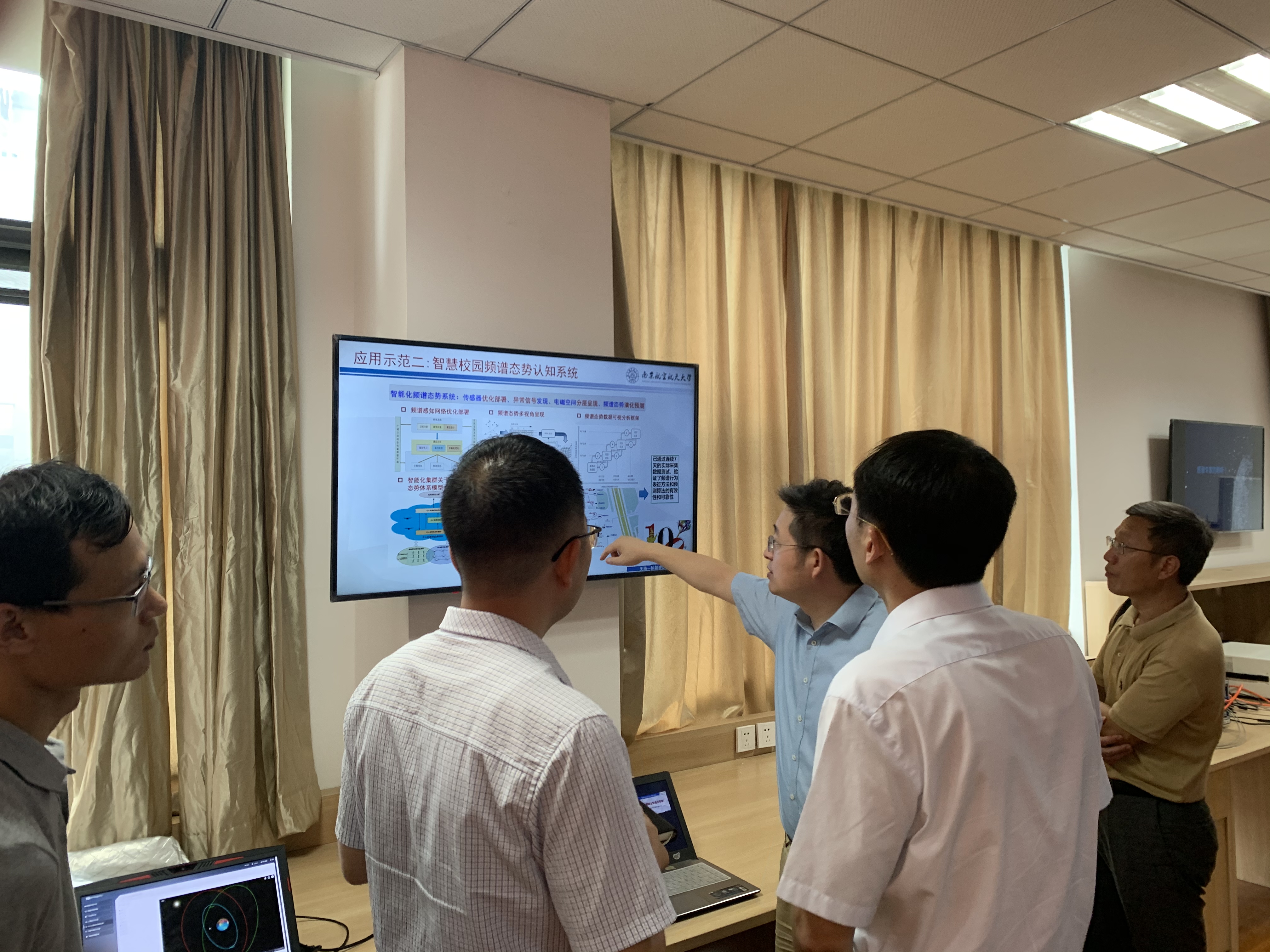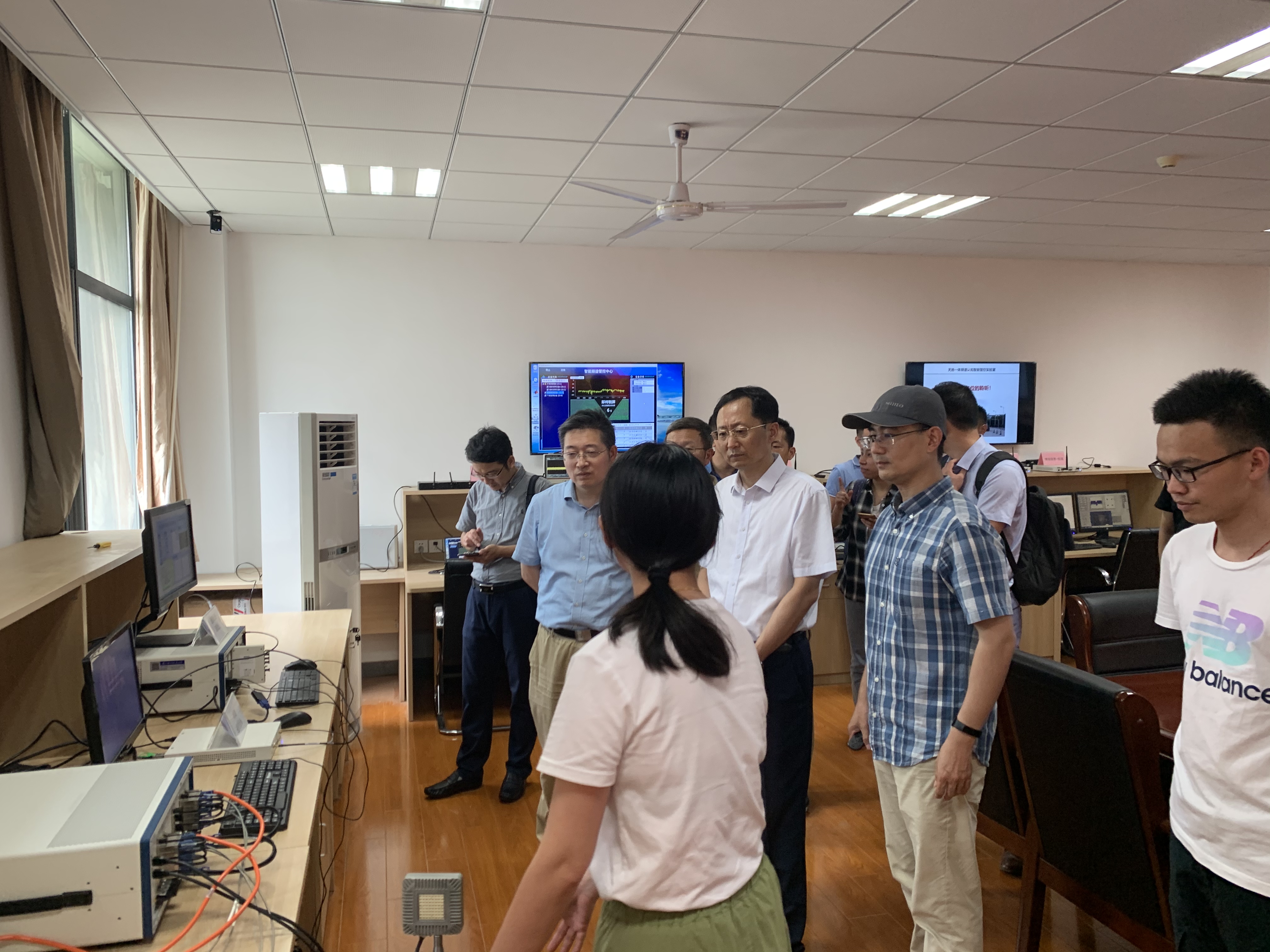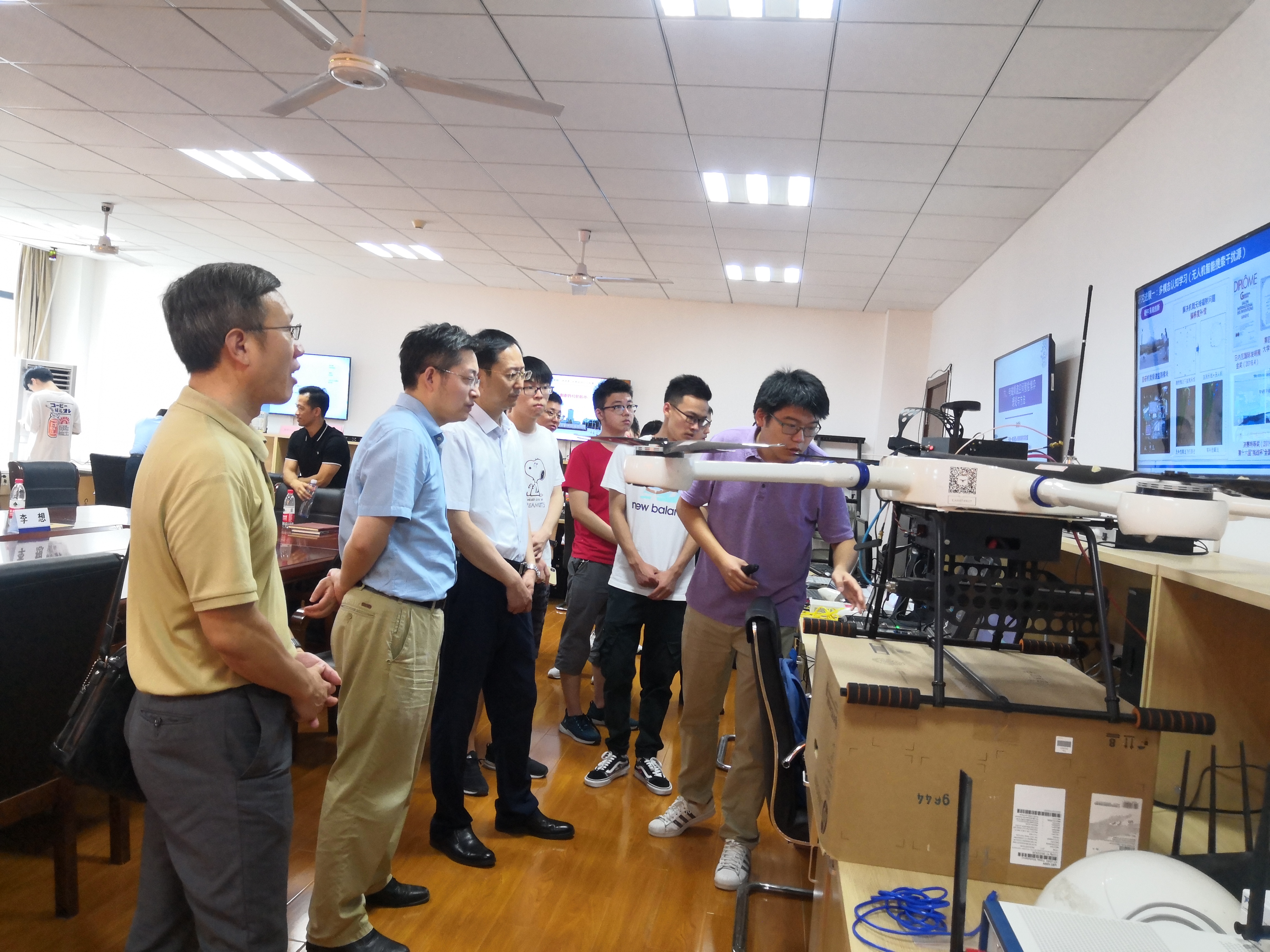 随后,王沙飞院士一行人观摩了实验室承担的国家自然科学基金重大91直播仪器研制项目“无人机频谱认知仪器研制”以及国家自然科学基金重点项目“大规模无人机集群智能自组网理论与关键技术”的现场演示。