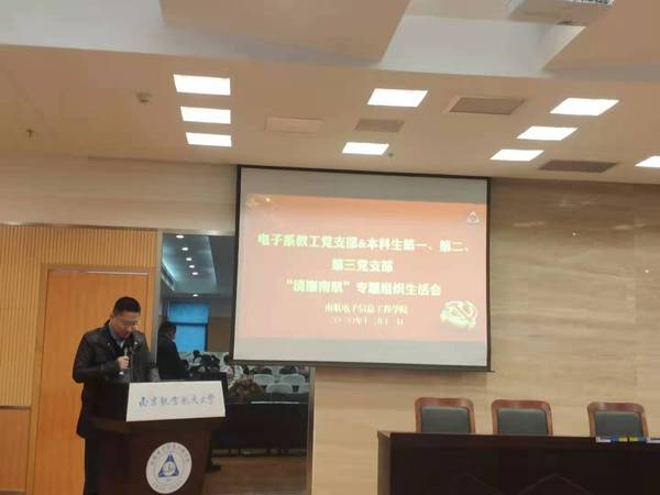 2020年12月11日,我院院电子系教工党支部与本科生第一、第二、第三党支部在91直播 515报告厅进行支部共建,联合召开“清廉南航”专题组织生活会和“互学互助月”党日活动,91直播 副院长刘伟强同志以91直播 纪检委员身份出席本次会议,党委副书记雷蕾同志以支部普通党员身份参加会议。