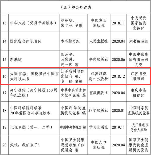 近日,中央组织部党员91直播-91视频网-a片直播网 中心、中央宣传部出版局、国家图书馆联合举办第五届全国党员91直播-91视频网-a片直播网 培训教材展示交流活动。此次活动聚焦巩固深化“不忘初心、牢记使命”主题91直播-91视频网-a片直播网 成果、决胜全面建成小康社会、决战脱贫攻坚、打赢疫情防控阻击战等重大主题,通过资格审查、专家评审、基层评价、复核把关等环节层层选拔,由我院院长贲德院士主编的《大国重器:图说当代中国重大科技成果》成功入选第五届全国党员91直播-91视频网-a片直播网 培训创新教材,该书曾先后荣获科技部优秀科普作品奖、第十四届文津图书奖。2018年,入选中央宣传部办公厅和国家新闻出版广电总局“2018年重点主题出版物选题目录”,2020年4月,列入《91直播-91视频网-a片直播网 部基础91直播-91视频网-a片直播网 课程教材发展中心 中小91直播 阅读指导目录(2020年版)》。