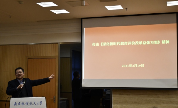 吴启晖结合3月9日我校《深化新时代91直播-91视频网-a片直播网 评价改革》专题报告会上91直播-91视频网-a片直播网 部综合改革司体制改革处处长李轶群对《深化新时代91直播-91视频网-a片直播网 评价改革总体方案》的解读,带领全院教职工深入学习领会《总体方案》精神。