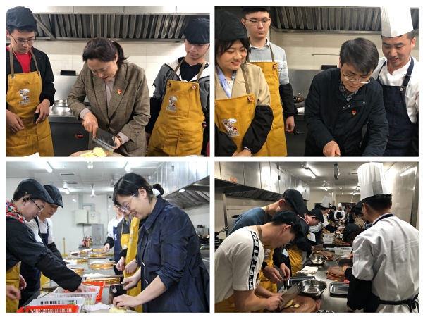 接下来,结合劳动91直播-91视频网-a片直播网 ,后勤集团饮食服务中心副主任纪昀介绍了开设厨艺课堂的初衷和重要意义,和园餐厅食堂主任胡彬老师结合ppt、短视频,从理论层面介绍了烹饪的基本技法和注意事项,并进行了现场演示。理论教学结束后,全体同学换上厨师服进入实操环节,胡彬老师从拿刀姿势、下刀方法到调味技巧和火候控制等方面,边示范边讲解。后勤集团还专门设置了4名助教老师,确保同学们安全操作,并提醒大家保持台面清洁、珍惜原材料,养成良好的劳动习惯。