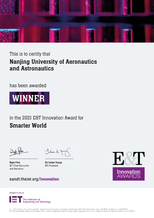 吴启晖教授及其频谱认知团队自主研发的无人机频谱认知仪“AerialRadioOverseer: An AI-enabled unmanned aerial vehicle radio system”荣获“Communications & IT”、“Protecting Society & Saving Lives”和“Smarter World”三项杰出创新奖提名,并最终斩获“Communications & IT”和“Smarter World”两项IET全球创新奖,这是该奖项设立以来中国首次且同时获得两项IET全球创新奖及一项提名奖。