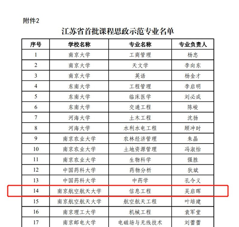近日,江苏省91直播-91视频网-a片直播网 厅公布了江苏省首批课程思政建设示范高校和示范专业名单,我院报送的信息工程专业成功入选江苏省首批课程思政建设示范专业。