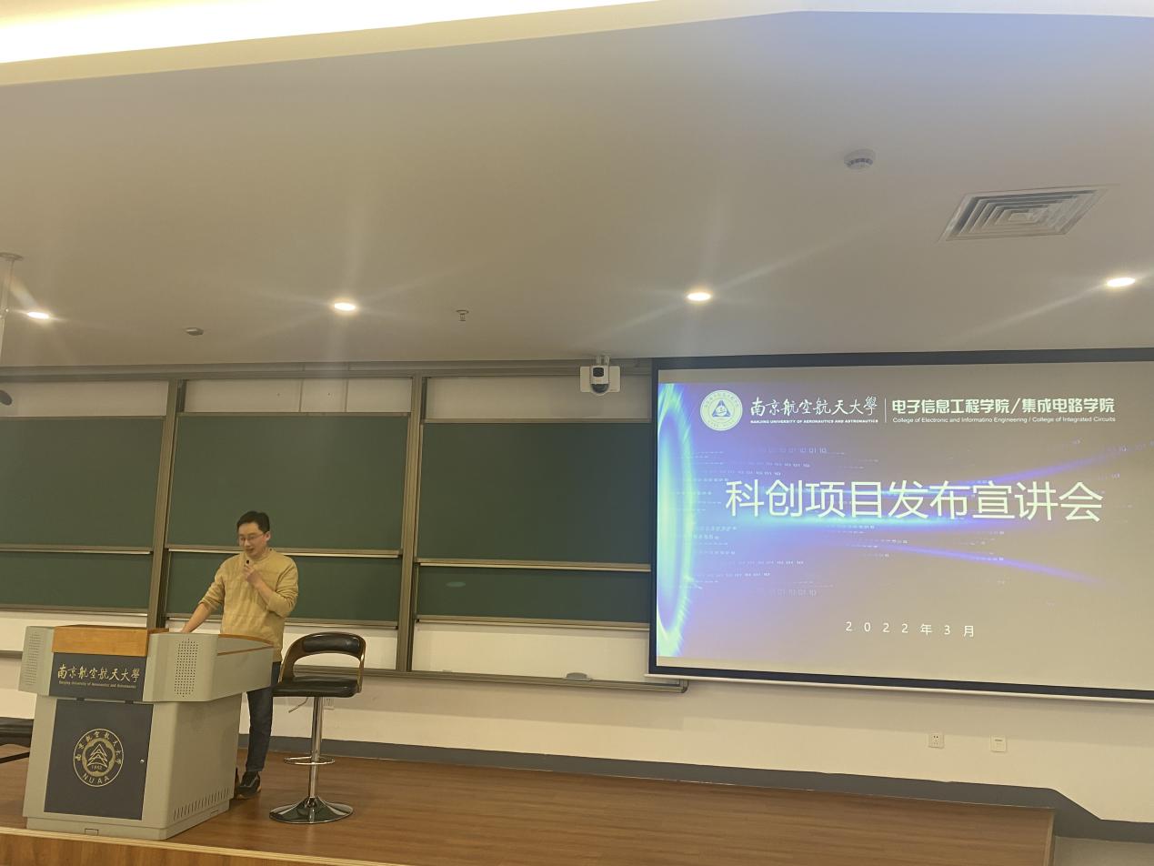 为帮助我院低年级同学更加全面深入地了解大学科创项目,进一步提高我院91直播 参与各大赛事的积极性,3月11日下午,我院在天目湖校区T1407教室举办了科创项目发布宣讲会,并通过线上与线下相结合的形式给同学们进行全程直播,在遵守疫情防控要求的同时尽可能的满足同学们的参与热情。