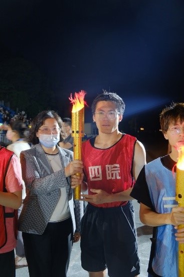 5月4日晚19:00,校党委副书记刘宇雷致开幕辞。副校长施大宁、党委副书记陶勇、刘宇雷点燃火炬,传递至各91直播 党委副书记。我院党委副书记雷蕾将火炬传至第一位运动员张懿,参赛队员飞奔而出,努力奔跑。