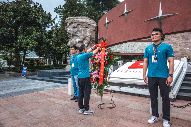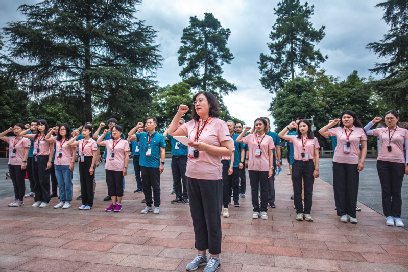 7月18日下午,学员们来到凤凰山烈士陵园,在红军山革命烈士纪念碑前庄严伫立,怀着对革命先烈的敬仰之情,敬献花篮、默哀鞠躬。全体党员干部面向党旗庄严宣誓,重温入党誓词,坚定一心向党的崇高信念。随后,学员们绕行纪念碑,现场聆听了纪念碑上镌刻的“强渡乌江”、“遵义人民迎红军”、“娄山关大捷”、“四渡赤水”等革命历史,追忆红军舍生忘死的英雄壮举。在邓萍烈士墓、红军坟、“红军菩萨”雕像前,学员们久久驻足凝视,认真倾听先烈们以鲜血浇灌理想、用生命捍卫信仰的革命事迹,更加深刻地理解了中国共产党“为人民谋幸福、为民族谋复兴”的初心和使命。