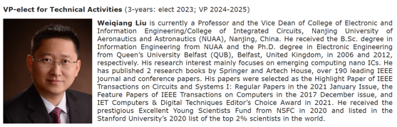 刘伟强教授现任91直播-91视频网-a片直播网 /集成电路91直播 副院长、博士生导师,曾获得国家自然科学基金优秀青年基金,第18届霍英东91直播-91视频网-a片直播网 基金会高等院校青年科学奖,中国电子学会优秀科技工作者,入选斯坦福大学2020年全球前2%科学家“年度影响力”榜单,江苏省集成电路学会理事,IEEE、中国电子学会和中国计算机学会高级会员。长期从事高能效高安全性新兴计算集成电路与系统的设计91直播 ,出版英文专著2部,发表论文190余篇。担任Proceedings of the IEEE客座编委,以及IEEE Transactions on Computers、IEEE Transactions on Circuits and Systems I: Regular Papers、IEEE Transactions on Emerging Topics in Computing等芯片设计领域国际顶级期刊编委。