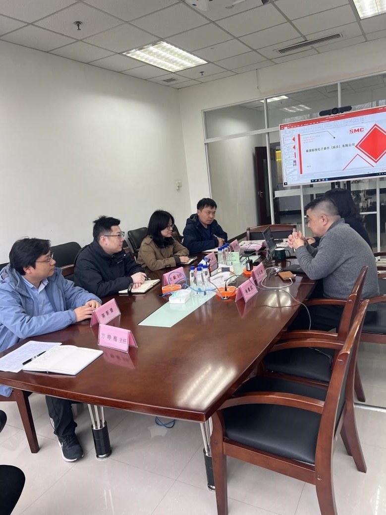 代表团一行首先来到了桑德斯微电子,该公司是近年来极具潜力、发展迅速的芯片行业领军型企业,在碳化硅技术领域拥有较强的技术壁垒,获得市“专精特新”称号。公司负责人向代表团详细介绍了公司的发展和产线、产品情况,并针对代表团提出的若干技术问题进行了探讨和交流。