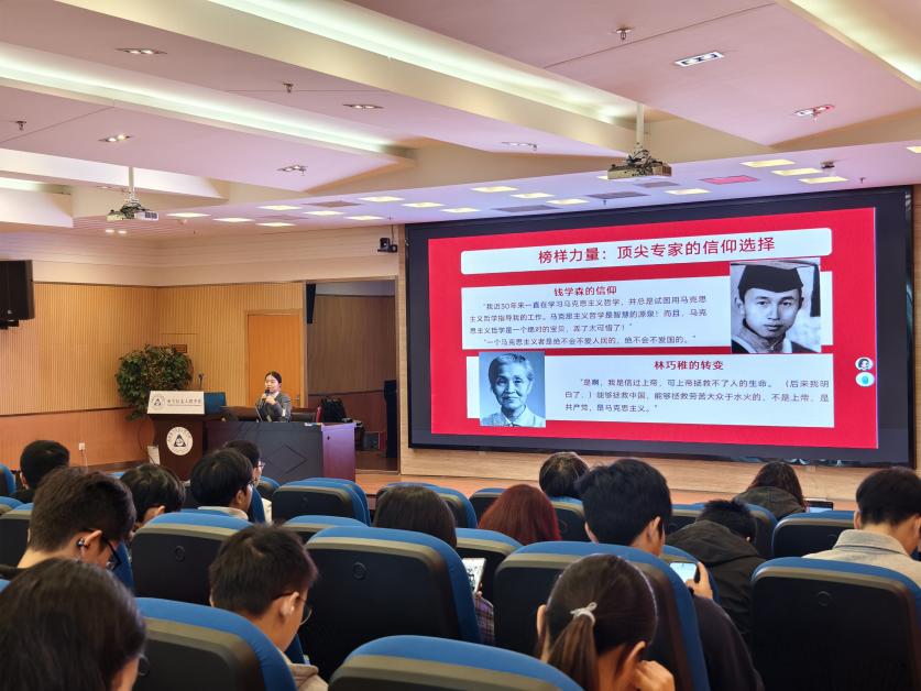 91直播 思政专员、马克思主义91直播 李晶文老师以“为‘中国芯’注入中国心”为主线开展专题讲座。她从“党员意味着什么”切入,引导学员思考世界观、人生观、价值观的塑造,阐述党员身份的庄严与担当。她结合钱学森、林巧稚等科学家的信仰故事,讲述信仰与理想的力量,深入剖析科技创新背后的制度优势与价值取向。她号召青年91直播 坚定“四个自信”,践行科技报国责任,将个人理想融入党和国家发展目标。